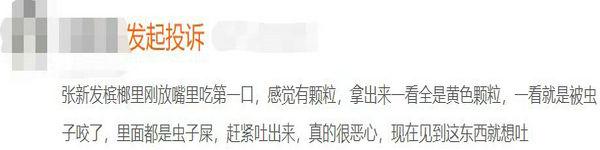有消費者反映,自己購買的張新發(fā)薄荷檳榔包裝上沒有生產(chǎn)日期和保質(zhì)期,誤食后才發(fā)現(xiàn)問題。隨即向商家說明情況,但其態(tài)度冷漠,不予回應(yīng)。更有大量消費者投訴稱,在張新發(fā)檳榔中吃出蟲子屎、頭發(fā),甚至產(chǎn)品未過保質(zhì)期卻已發(fā)霉變質(zhì),“吃了問題檳榔后導(dǎo)致胃痛、嘔吐,反饋給商家后,對方置之不理,他們這種態(tài)度以后誰還敢吃。”
