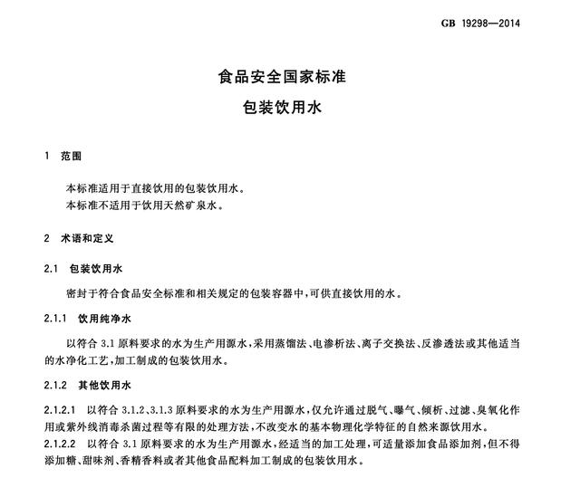 目前,有食品安全國(guó)家標(biāo)準(zhǔn)的只有“包裝飲用水”和“飲用天然礦泉水”,在國(guó)標(biāo)下,對(duì)這兩種水有明確的定義和生產(chǎn)標(biāo)準(zhǔn)。