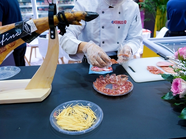 在史蜜斯國(guó)際高端區(qū),重點(diǎn)展示了進(jìn)口伊比利亞火腿、史蜜斯巴黎風(fēng)味火腿等高端肉制品,吸引了眾多專業(yè)采購(gòu)商和五星級(jí)客戶的關(guān)注。現(xiàn)場(chǎng)設(shè)置的“主廚品鑒臺(tái)”成為展區(qū)亮點(diǎn),由專業(yè)火腿分割師現(xiàn)場(chǎng)切片,將產(chǎn)品的國(guó)際化品質(zhì)與風(fēng)味淋漓盡致地呈現(xiàn)給觀展人士。史蜜斯品牌負(fù)責(zé)人表示,希望通過此次展會(huì),進(jìn)一步擴(kuò)大高端市場(chǎng)份額,并尋求與全球高端渠道的深度合作。
